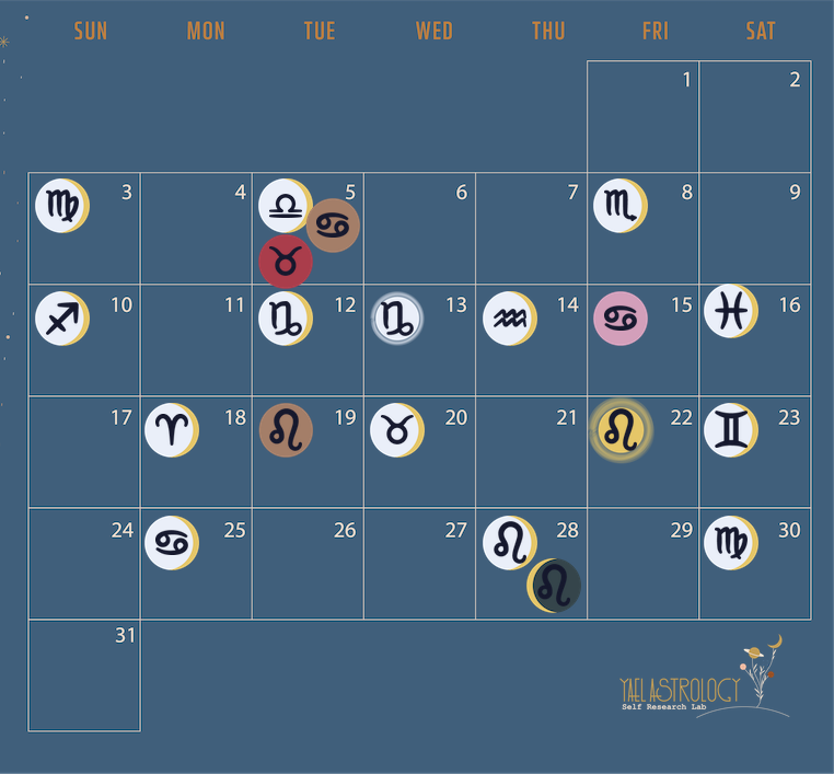Astrology Calendar July 2022 Choose a month December 2021 January 2022 February 2022 March 2022 April 2022 May 2022 June 2022 July 2022 August 2022 September 2022 October 2022 November 2022 December 2022 Choose a month December 2021 January 2022 February 2022 March 2022 April 2022 May 2022 June 2022 July 2022 August 2022 September 2022 October 2022 November 2022 December 2022 Jul 2022 Detailed Events 03 – Moon enters Virgo05 – Moon enters Libra, Mercury enters Cancer, Mars enters Taurus08 – Moon enters Scorpio10 – Moon enters Sagittarius12 – Moon enters Capricorn13 – Full Moon in Capricorn14 – Moon enters Aquarius16 – Moon enters Pisces17 – Venus enters Cancer18 – Moon enters Aries19 – Mercury enters Leo20 – Moon enters Taurus22 – Sun enters Leo23 – Moon enters Gemini25 – Moon enters Cancer28 – Moon enters Leo, New Moon in Leo29 – Jupiter goes Retrograde30 – Moon enters Virgo Calendar Key The data in this calendar is based on USA EST Eastern Standard Time (UTC-05) timezone. Each event presented on a certain date, occurred between 12:00 AM to 11:59 PM EST on that date. Jun 2022 2022 Calendar Main Aug 2022 Schedule Your Personal Reading Learn Astrology Basics
